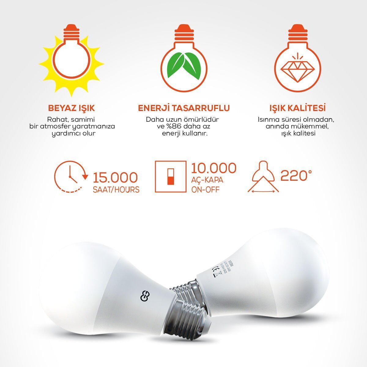 Günsan 10’lu LED Ampul 15W Beyaz Işık E27, sade ama güçlü bir çözüm arayanlar için fazlasıyla yeterli. Tek bir pakette hem uzun ömürlü kullanım, hem enerji verimliliği, hem de göz alıcı beyaz ışık sunar. Yaşam alanlarınızda kaliteli ve ekonomik aydınlatmanın farkını hissetmek için ideal bir tercih.