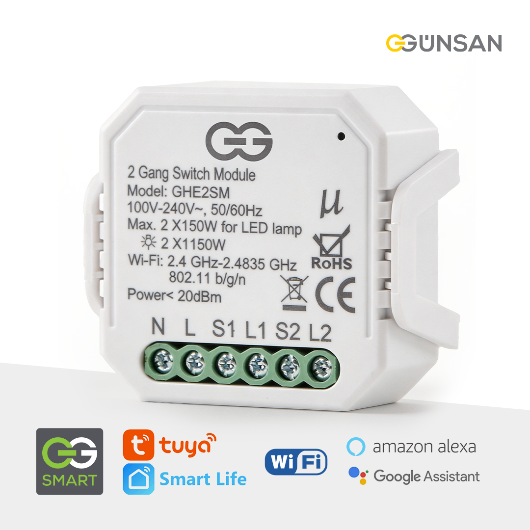 Günsan 2’li Akıllı Wi‑Fi Anahtar Modülü, ev ve ticari alanlarda mevcut elektrik tesisatını bozmadan aydınlatmaları akıllı sisteme dönüştürmek isteyen kullanıcılar için geliştirilmiş pratik ve güvenilir bir çözümdür.