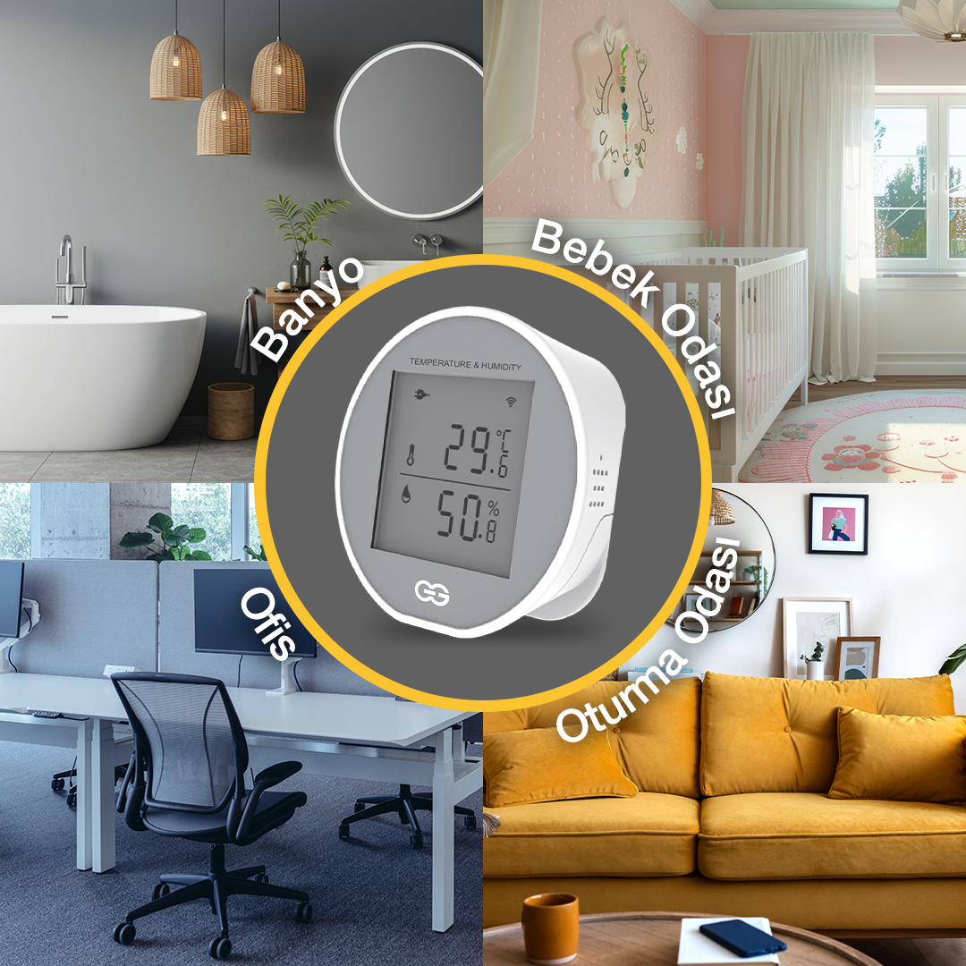 Günsan akıllı ev ürünleri arasında konumlanan bu sensör, Wi-Fi bağlantısı sayesinde Tuya ve Smart Life uygulamalarıyla entegre şekilde çalışır. Bu sayede uzaktan erişim sağlamak, sınırlandırıcı bir cihaz arayüzüne bağlı kalmadan tüm verileri telefonunuzdan anlık olarak izlemek mümkün olur. Özellikle bebek odası, yatak odası veya iklim kontrolünün kritik olduğu yaşam alanlarında ideal nem ve sıcaklık dengesini kurmanıza yardımcı olur.