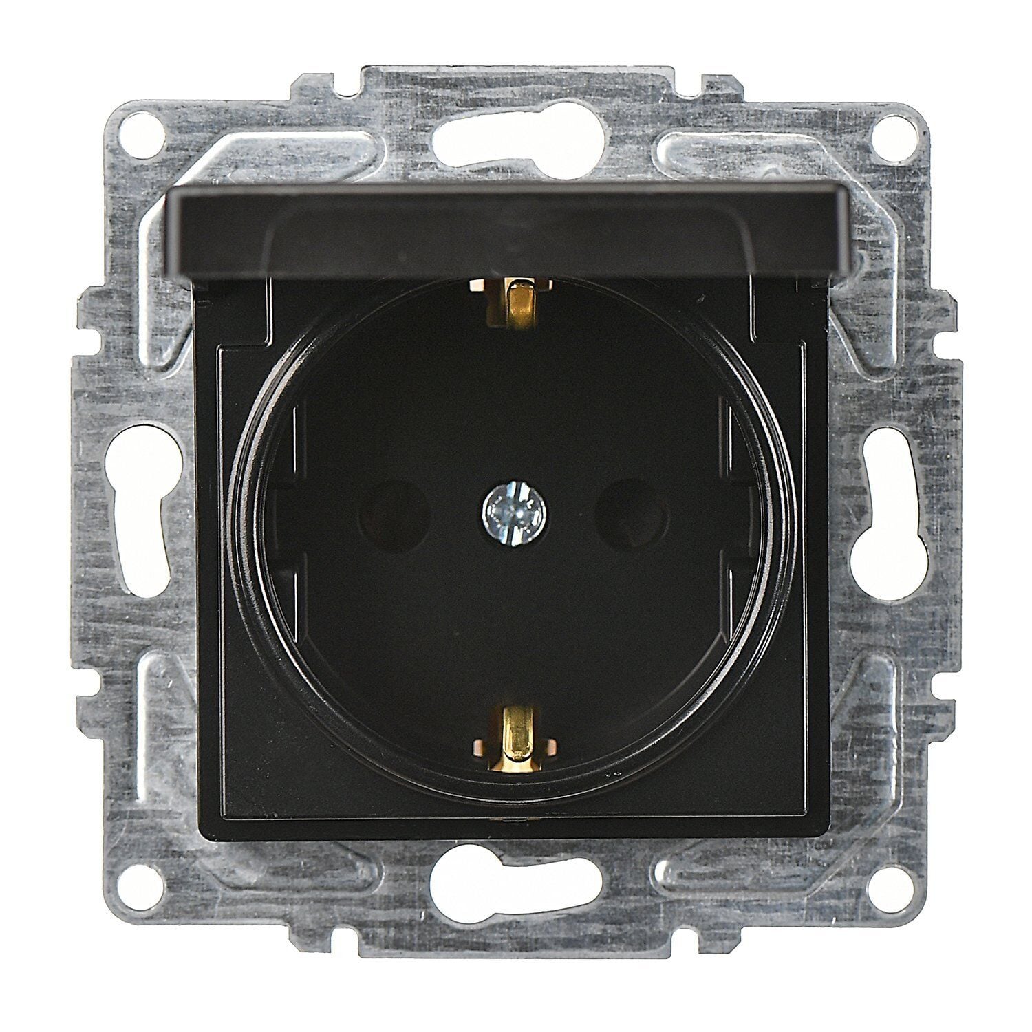 Günsan Eqona Metalik Siyah Çocuk Korumalı Kapaklı Topraklı Priz Mekanizma