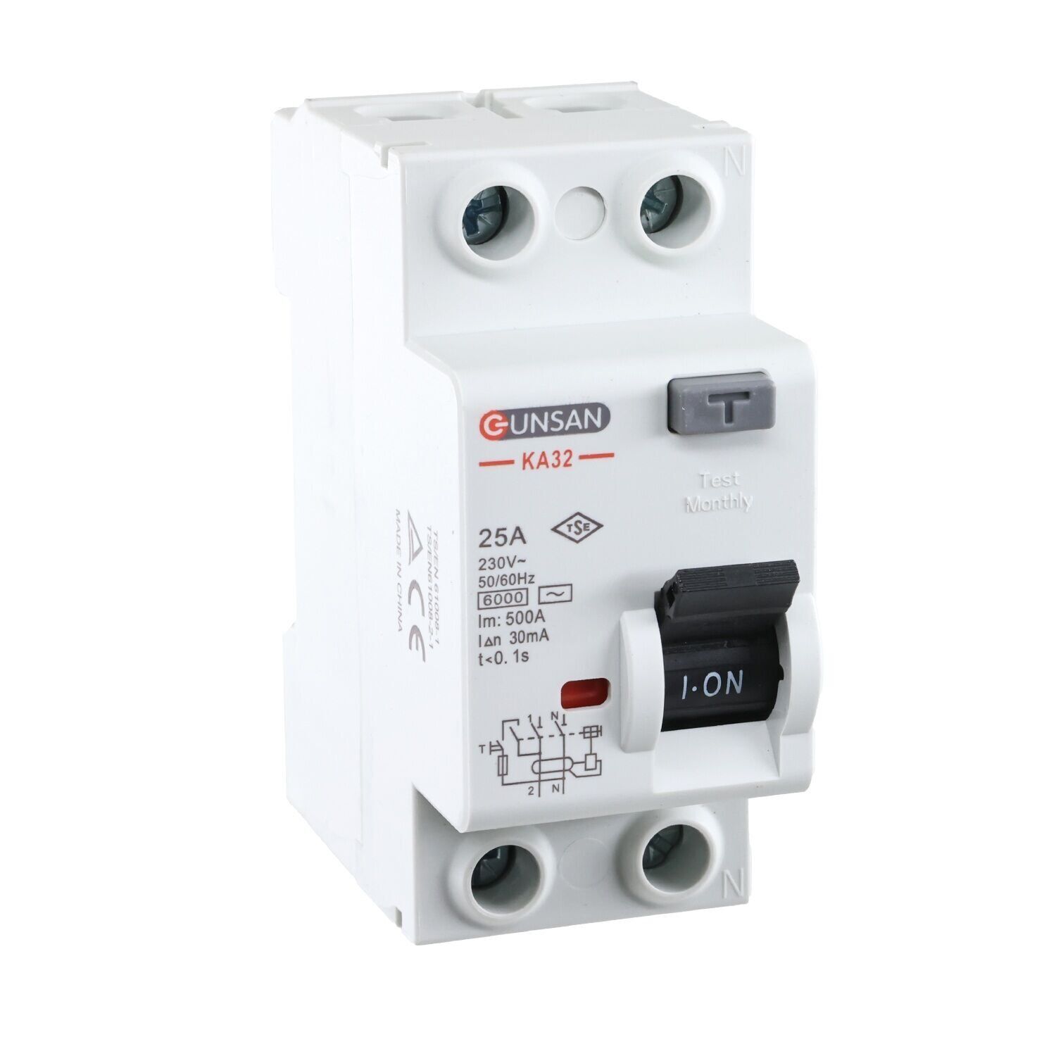 Günsan Valta Kaçak Akım Rölesi AC Tip 6kA 30mA 25A 1 Kutup + Nötr
