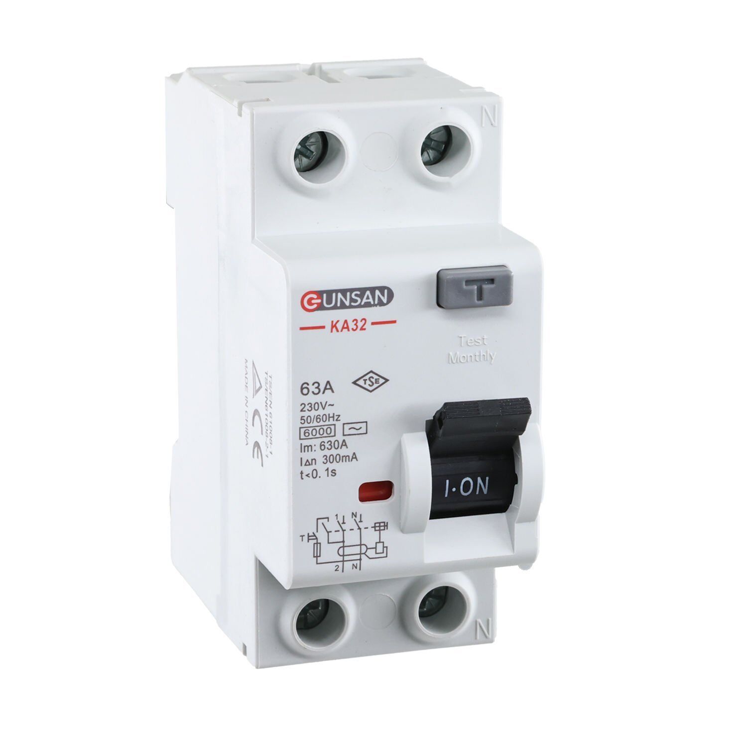 Günsan Valta Kaçak Akım Rölesi AC Tip 6kA 300mA 63A 1 Kutup + Nötr