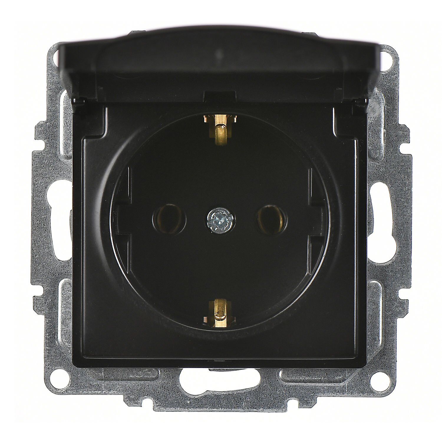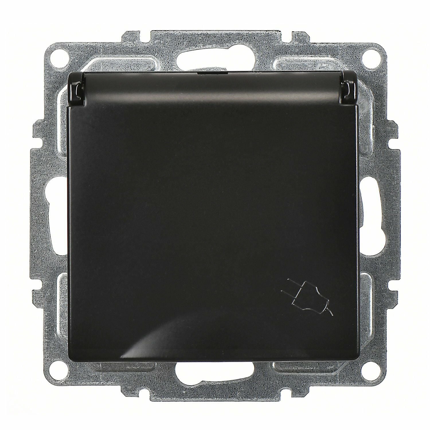 Günsan Visage Metalik Siyah Kapaklı Topraklı Priz Mekanizma