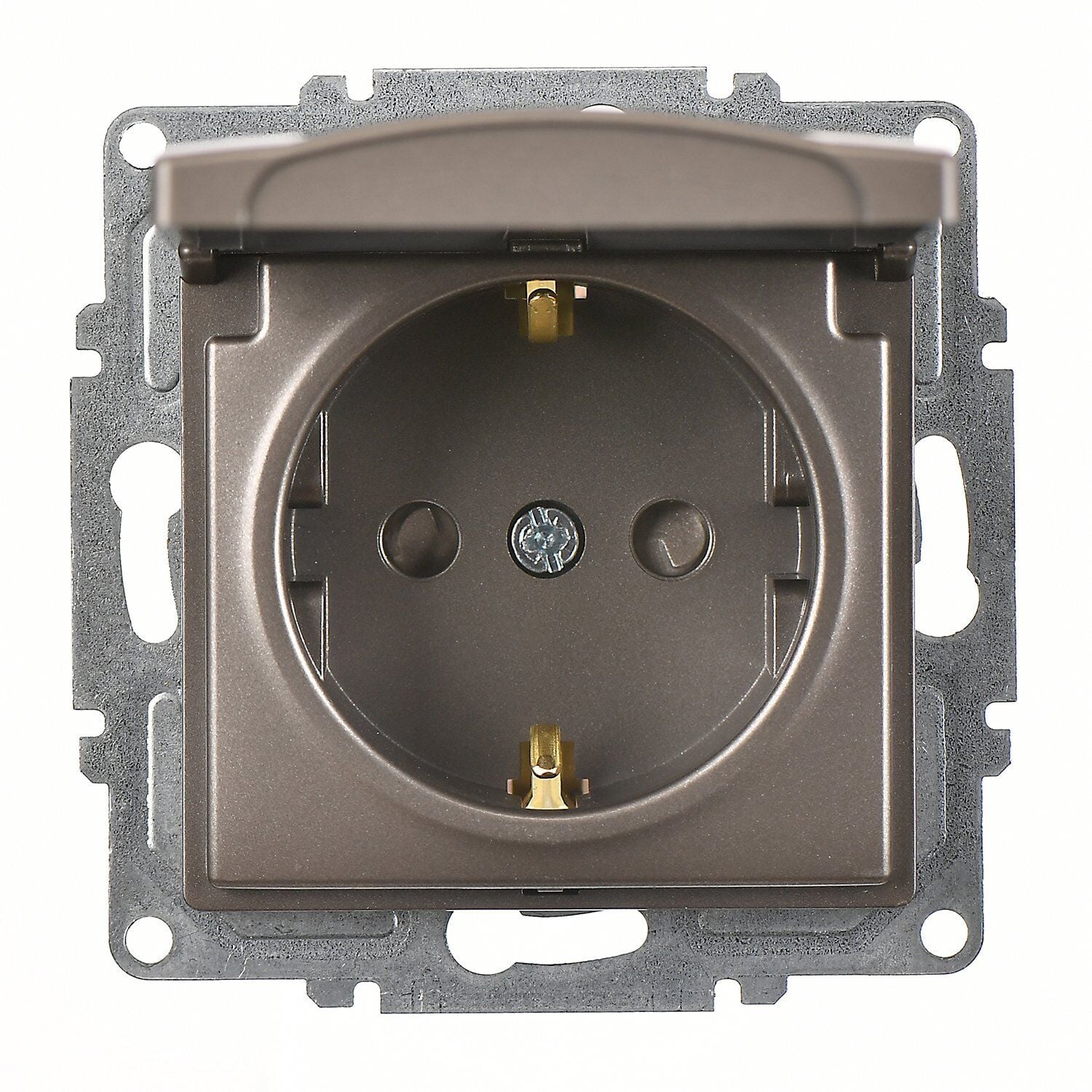 Günsan Visage Mocha Çocuk Korumalı Kapaklı Topraklı Priz Mekanizma